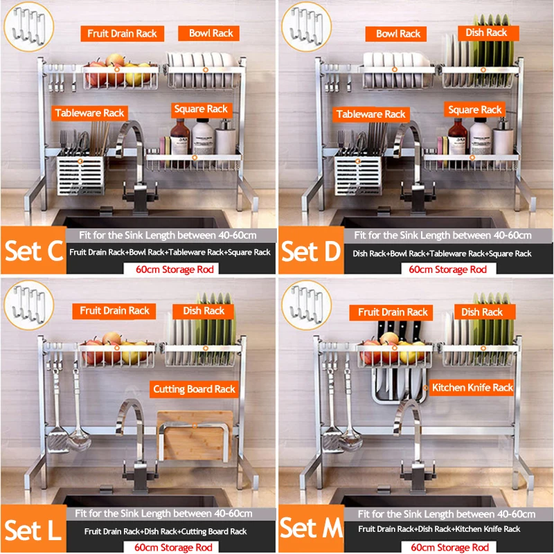 1 2 Tier Multi Use Stainless Steel Dishes Rack Dual Sink Drain