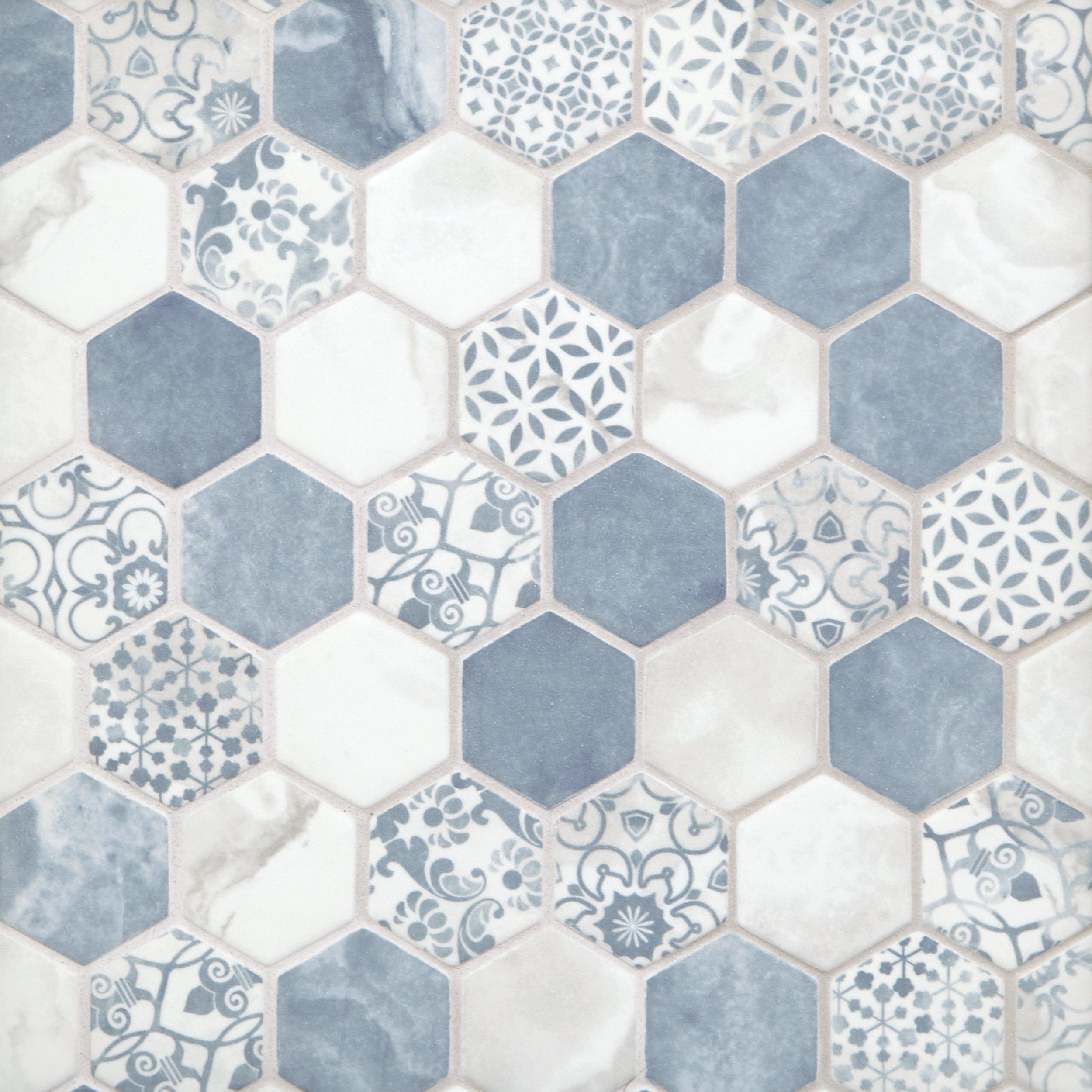 Hexa Deep Navy Hexagon Mixed Mosaic Tiles Direct Store