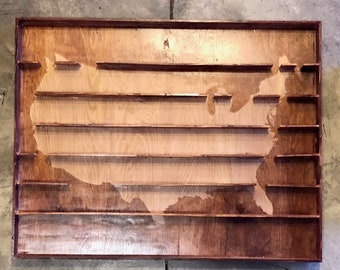 Shooters Holder Wall Shadow Box Oak Finish Tall Shot Glass Display