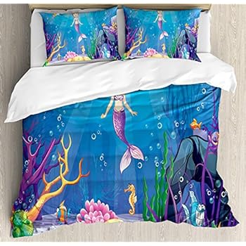 Amazon.com: Mermaid 4 Pieces Bedding Set Twin, Graphic of ...